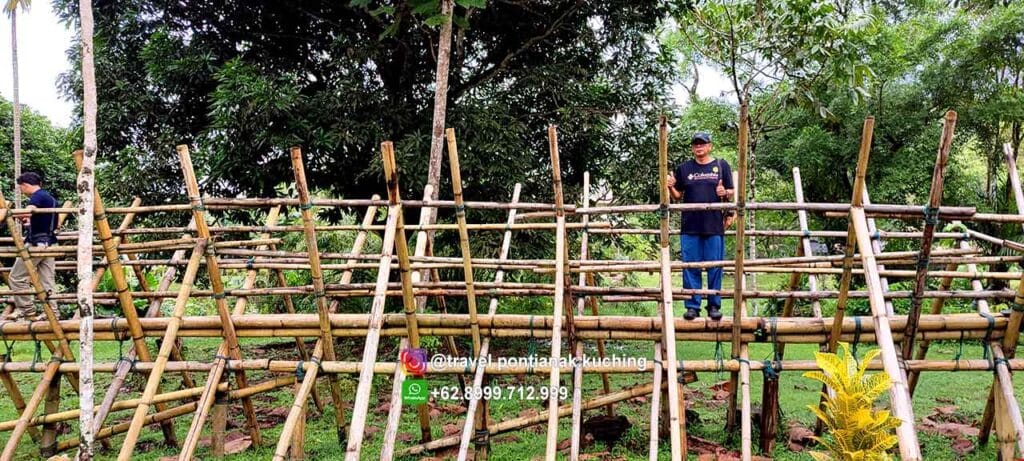 Jangan lupa jangan lewatkan untuk merasakan melintasi berjalan di atas jembatan bambu yang unik, replika jembatan yang ada di pedalaman kampung yang di buat di Kampung Budaya Sarawak ini.